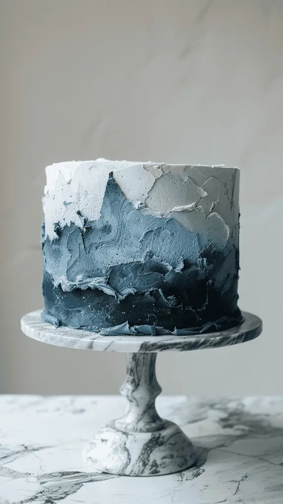- An all-blue cake with navy and royal blue swirls